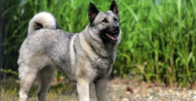 The Norwegian Elkhound is one of the Northern Spitz-type breeds of dog and is the National Dog of Norway. The Elkhound has served as a hunter, guardian, herder, and defender. It is known for its courage in tracking and hunting moose (or elk) and other large game, such as bears or wolves. The Norwegian Elkhound was first presented at a dog exhibition in Norway in 1877.