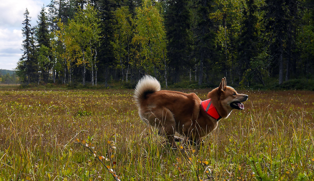 The Norrbottenspets is a breed of dog of the spitz type. It is a breed whose original purpose was a farm and hunting dog but has recently become more popular as a companion dog. The Norrbottenspets is used to hunt wood grouse, black grouse, capercaillie and hazel grouse, but also fox, marten and raccoon. Some individuals are also effective with mammals as large as moose and grizzly bear. Norrbottenspets was formerly used in hunting squirrels when squirrel fur was valuable at the beginning of the 20th century and earlier.